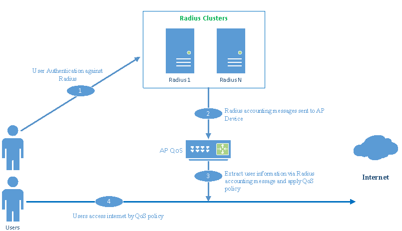 1. Users interacts with radius server(s), in most deployment, on authentication