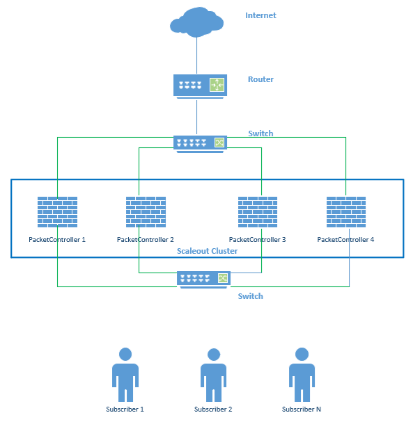 Scaleout is a solution where multiple PacketController AP devices form a cluster to provide the same set of services as a single infrastructure. The Scaleout technology enables QoS/CGN services to be provided across multiple devices for load distribution and better scalability. The services provided by one or more NAT pools can be spanned across multiple devices that form a Scaleout cluster. Scaleout supports dynamically adding or removing devices to the cluster. When the number of devices in the cluster changes, the traffic gets rebalanced automatically.